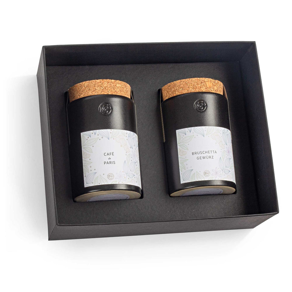 Mit dem Bruschetta Gewürz gelingen Antipasti, Pasta und Salate wie in einer italienischen Trattoria. Café de Paris verleiht Kräuterbutter, Dips und Saucen einen feinen, aromatischen Charakter und eignet sich auch für Fleisch, Gemüse und Grillgerichte. So wird die Geschenkbox Gewürze zum Allrounder für gesellige Kochabende.