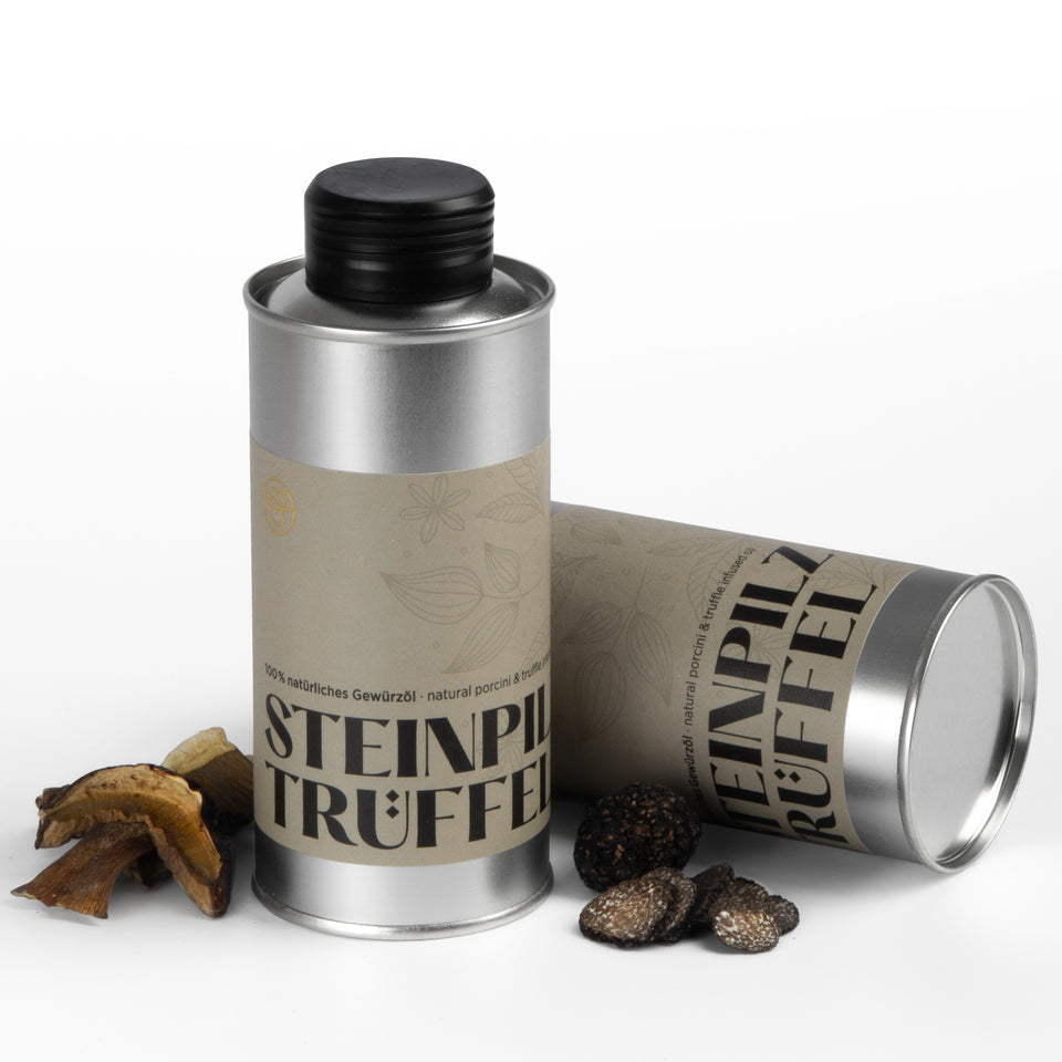 Unser Steinpilz-Trüffel-Gewürzöl ist ein wahres Geschmackserlebnis für Gourmets.