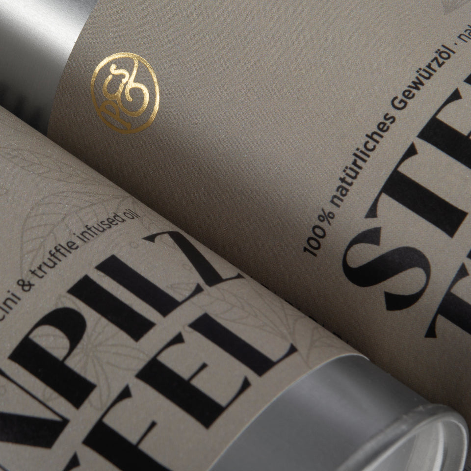 Steinpilz-Trüffel Öl von Pfeffersack & Soehne in eleganter Metalldose – aromatisches Gewürzöl mit edlem Trüffel und Steinpilz, ideal für Pasta, Risotto und Gourmet-Gerichte.