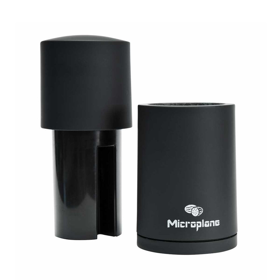 Die Microplane - Spicemill reibt Gewürze wie Muskatnuss, Zimtstangen und Tonkabohnen mühelos mit einem präzisen und feinen Mahlergebnis. Die Reibefläche besteht aus langlebigen und extrem scharfen Schneidekanten und ist aus rostfreiem Edelstahl gefertigt. Das ergonomisch geformte Design sorgt für eine bessere Handhabung. Außerdem gibt es eine lebenslange Garantie auf diese Mühle.