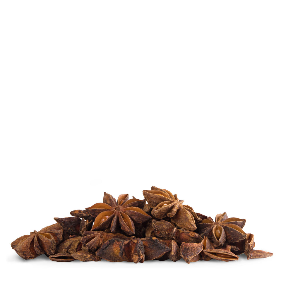 Unser Sternanis wird schonend getrocknet um die ätherischen Öle bestmöglich zu erhalten. Seine Aromen sind in Alkohol löslicher als in Fett, weshalb man sich beispielsweise seinen eigenen Weihnachtslikör ansetzen kann. In Speisen verwendet gibt man ihn zu Beginn der Zubereitung direkt mit in die Pfanne oder den Topf und lässt ihn im fetthaltigen Sud zusammen mit den anderen Zutaten schmoren. Er sollte kurz vor dem Servieren wieder aus dem Gericht entfernt werden. Ist nur ein dezentes Anisaroma gewünscht, einfach eine der acht Zacken abbrechen und den Rest der Frucht wieder gut verschließen.
